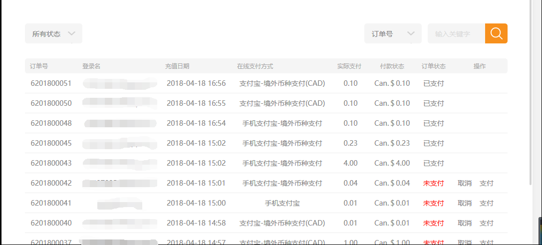 ⑥.后台---会员---会员交易里,点击“在线支付查看”,管理员可以查看用户的在线支付订单